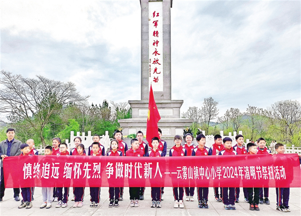 ▲ 4月1日,在清明節(jié)即將到來之際,石泉縣云霧山鎮(zhèn)中心小學(xué)組織部分少先隊(duì)員,在紅軍英雄紀(jì)念碑前開展愛國主義教育。譚相華 攝