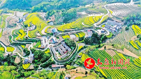 層層疊疊的梯田里,散落著田間的房舍、裊裊的炊煙、勞作的人群,好似一幅濃濃的山水田園詩(shī)畫(huà)。