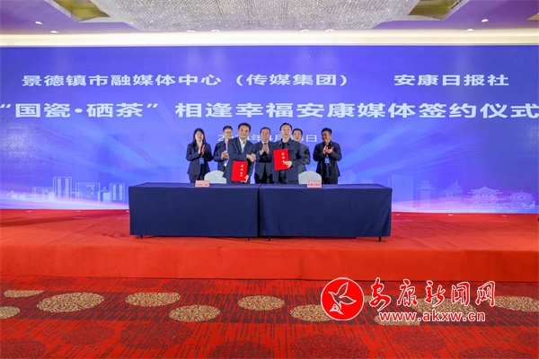 本網(wǎng)訊(記者 楊京保 翟本榮)4月18日,安康日?qǐng)?bào)社與景德鎮(zhèn)市融媒體中心(傳媒集團(tuán))在中國(guó)絲路報(bào)盟“教育+研學(xué)”產(chǎn)業(yè)發(fā)展大會(huì)現(xiàn)場(chǎng)舉行“國(guó)瓷·硒茶”相逢幸福安康媒體簽約儀式。