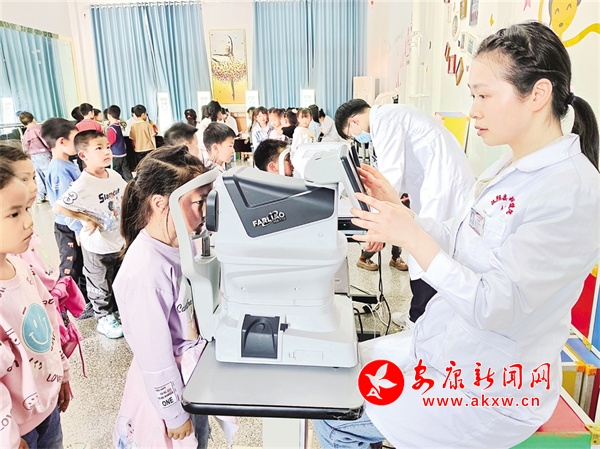 4月17日,漢陰縣婦幼保健院到蒲溪鎮(zhèn)小學(xué)教育集團(tuán)開展學(xué)生視力檢測。 鄧永新 攝