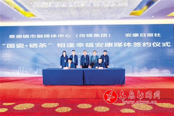 △安康日報社與景德鎮(zhèn)市融媒體中心(傳媒集團(tuán))舉行“國瓷·硒茶”相逢幸福安康媒體簽約儀式