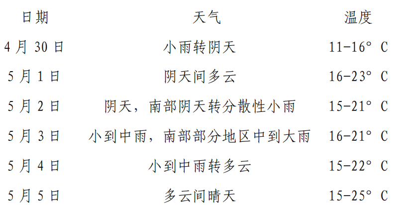 溫馨提示:5月1—2日我市以陰天到多云天氣為主,溫度適宜,空氣質(zhì)量較好,適合外出游玩;3—4日有明顯降水天氣降水過程,需防范降水導致的道路濕滑、低能見度等對道路交通的不利影響。公眾可及時關注最新預報預警信息,合理安排出行時間。