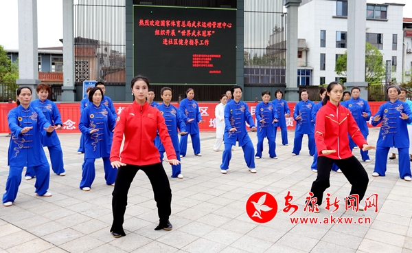 “上午現(xiàn)場(chǎng)觀看盧向成太極劍奪冠的比賽,下午他就來到我們身邊教太極拳,太激動(dòng)了。”6月4日,呂泰東、楊順洪、盧向成、胡書婷、楊瑾5名世界太極拳冠軍走進(jìn)安康老年大學(xué)廣場(chǎng),為百余名太極拳愛好者示范講解太極拳。