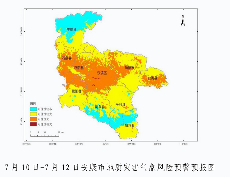 經(jīng)安康市自然資源局、安康市氣象局7月10日10時聯(lián)合會商研判,由于我市前期降雨量大,土體含水飽和,后期仍有較強降水過程,降水有一定疊加效應,且地質(zhì)災害存在滯后性,預計7月10-12日我市石泉、漢陰、漢濱、恒口示范區(qū)南部、紫陽北部、旬陽西部和北部、白河中南部、嵐皋北部和中部、平利中部的部分地方地質(zhì)災害氣象風險等級為高,其余地方地質(zhì)災害氣象風險等級為較高。請各部門按照各自職責做好地質(zhì)災害防治工作。