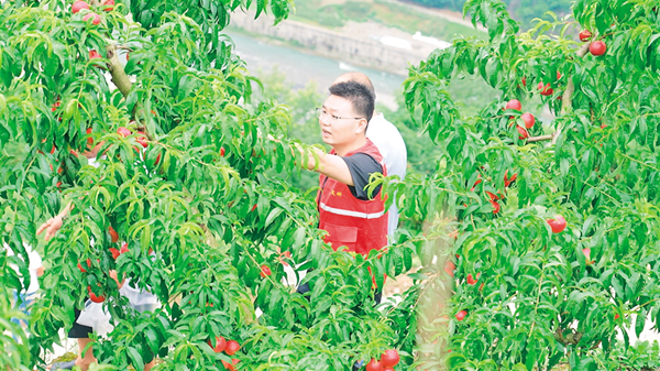自此之后,該村先后開墾撂荒地1200余畝,逐步建成了300畝桃園、300畝烤煙、500畝茶園和兩個養(yǎng)雞場。園區(qū)建好了,僅靠村股份合作社的力量來經(jīng)營和管理卻又力有不逮。面對這個問題,該村發(fā)揮黨員示范作用,把3個園區(qū)交給年富力強、有創(chuàng)新意識和經(jīng)營頭腦的3名年輕黨員管理,把兩個養(yǎng)雞場轉(zhuǎn)租給2個公益崗來經(jīng)營,村集體只收租金和服務(wù)費。胡維山就是承包300畝油桃產(chǎn)業(yè)園的年輕黨員。去年油桃進入豐產(chǎn)期后,他支付了30多萬元勞務(wù)工資后,還多為村集體經(jīng)濟貢獻了2萬多元的資金。今年油桃已經(jīng)開園,預(yù)計可以收入50余萬元。