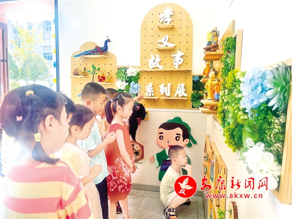 “百善孝為先、孝敬是根本;天地恩情永難忘,心中扎下根;中華孝道是美德,傳給后來人……”8月14日,在漢濱區(qū)鐵路幼兒園暑期活動中,一曲《百善孝為先》的韻律操,稚嫩的童聲和動作中盡展對長輩的尊敬愛戴和對孝義的理解與真摯情感。孝義小書吧、孝義故事會、孝義文化長廊、孝義園本課程……該園通過創(chuàng)設(shè)互動環(huán)境,引導(dǎo)孩子們通過看、聽、說等多種方式,全面感知和理解孝義文化的深刻內(nèi)涵,構(gòu)建起獨(dú)具特色的沉浸式孝義園本課程體系。