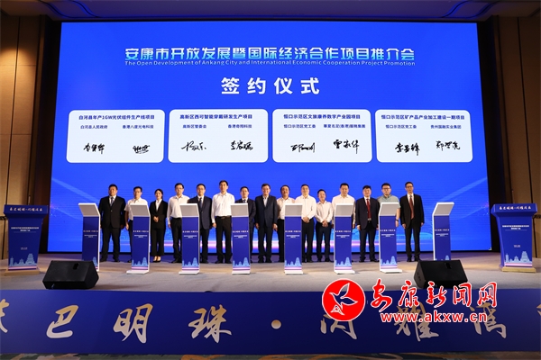 會(huì)上,市委常委、常務(wù)副市長(zhǎng)黃戈授予東莞市電子信息產(chǎn)業(yè)協(xié)會(huì)、珠海市陜西商會(huì)、中山市陜西商會(huì)、佛山市陜西商會(huì)、江門市陜西商會(huì)“安康市對(duì)外經(jīng)濟(jì)合作聯(lián)絡(luò)站”標(biāo)牌。中國科學(xué)院院士、南方科技大學(xué)教授趙天壽發(fā)表了《碳中和儲(chǔ)能技術(shù)助推安康經(jīng)濟(jì)高質(zhì)量發(fā)展》主旨演講。市發(fā)改委、市市場(chǎng)監(jiān)管局、漢濱區(qū)、白河縣、瀛湖生態(tài)旅游示范區(qū)等部門和縣區(qū),圍繞富硒食品、新型材料、生態(tài)旅游、生物醫(yī)藥等重點(diǎn)產(chǎn)業(yè)鏈,發(fā)布了國際經(jīng)濟(jì)合作項(xiàng)目。市科技局、市行政審批服務(wù)局、陜西信合安康審計(jì)中心圍繞科創(chuàng)政策、營(yíng)商環(huán)境、金融保障等方面進(jìn)行專題推介,多名科研院所專家現(xiàn)場(chǎng)發(fā)布科研成果產(chǎn)業(yè)化項(xiàng)目。現(xiàn)場(chǎng)集中簽約光伏組件、智能終端、毛絨玩具等16個(gè)招商引資項(xiàng)目,總投資44.9億元。