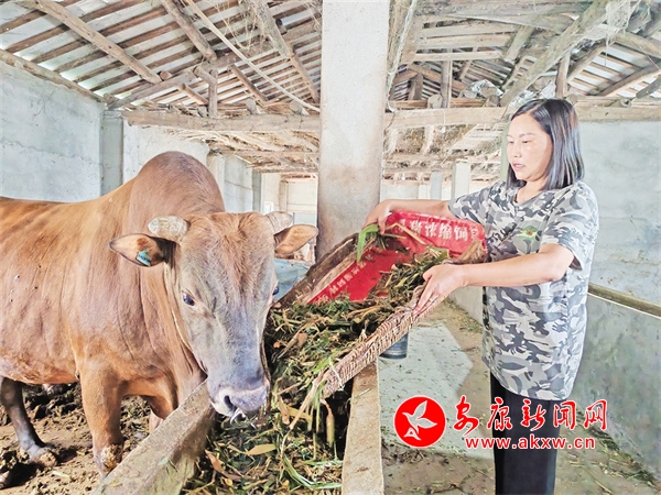 給牛喂草料 楊遷偉 攝