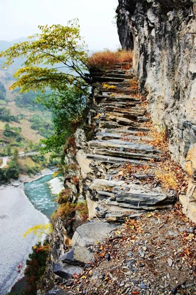 秋天徒步于鎮(zhèn)坪古鹽道,仿若進(jìn)入一個金色的世界。秋日溫煦的陽光透過金色的樹葉灑落在石板上,那一張張金黃的葉子像黃色的蝴蝶,在光與影中飛舞著,這是秋日獨有的靈動。