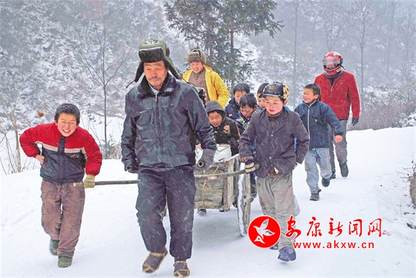 2007年冬天,學(xué)校水管上凍,師生齊力運水確保廚房用水。