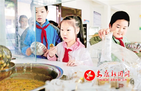2024年,學(xué)生在新建的餐廳排隊吃早餐。