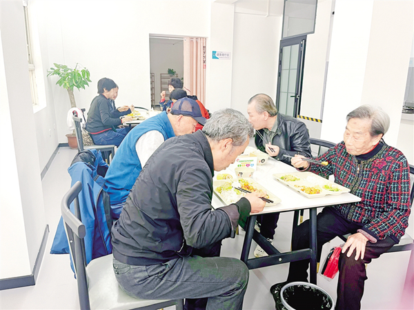 老人們?cè)谥駡@社區(qū)養(yǎng)老服務(wù)中心就餐