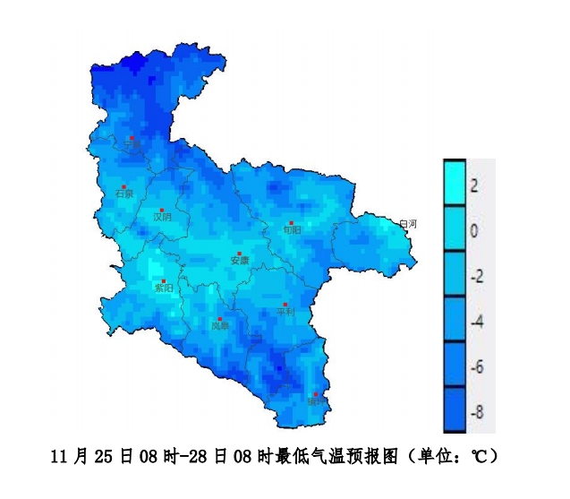 本網(wǎng)訊 11月22日9時(shí),安康市氣象臺(tái)發(fā)布《重要天氣報(bào)告》,根據(jù)最新氣象觀測(cè)資料和數(shù)值模式分析,預(yù)計(jì)11月23—24日我市有小雨,南部局地中雨,其中24日夜間至25日清晨高山地區(qū)部分地方有雨夾雪或小到中雪,最大積雪深度2~5cm。受較強(qiáng)冷空氣和輻射降溫影響,25—27日最低氣溫下降顯著,預(yù)計(jì)日最低氣溫出現(xiàn)在11月27日清晨,川道地區(qū)-3~1℃,高山地區(qū)-8~-3℃。25—27日我市有3~4級(jí)吹風(fēng)天氣,陣風(fēng)6級(jí)以上。