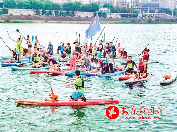 近年來,安康的水上運(yùn)動(dòng),尤其是槳板運(yùn)動(dòng)吸引了越來越多的人關(guān)注,以其能促進(jìn)人的反應(yīng)能力、四肢協(xié)調(diào)能力、平衡能力等特點(diǎn)成為安康“最熱門”的水上運(yùn)動(dòng)之一,更多市民主動(dòng)參與其中,在運(yùn)動(dòng)中收獲健康和快樂。很多人在岸邊看見了槳板也會(huì)主動(dòng)上前詢問,這讓吳忠很高興,他說,從一開始的門可羅雀到現(xiàn)在槳板群的群友已經(jīng)有220多個(gè)人,槳板運(yùn)動(dòng)的魅力讓更多人遠(yuǎn)離了麻將桌、酒桌,放下了手機(jī),意識(shí)到了鍛煉身體的好處。醫(yī)生、警察、個(gè)體經(jīng)營者、普通職員……各行各業(yè)的人因?yàn)榕d趣加入了槳板運(yùn)動(dòng)的隊(duì)伍之中,又把槳板的魅力推向更多人,大家彼此介紹、互相熟悉了解,在收獲友誼和健康的同時(shí),逐漸組成了一個(gè)“槳板社會(huì)”。