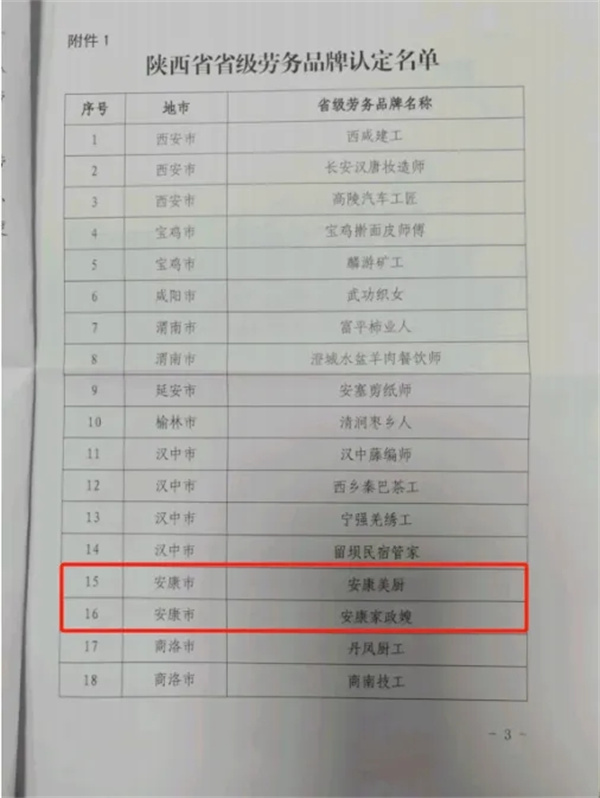 12月3日,陜西省人力資源和社會保障廳、陜西省財政廳公布2024年陜西省省級勞務品牌認定名單及2024年陜西省省級勞務品牌引領(lǐng)單位認定名單,我市兩個勞務品牌——安康美廚、安康家政嫂,兩家勞務品牌引領(lǐng)單位——陜西禹金洲餐飲管理有限公司、陜西康嫂家政服務有限公司分別入選。
