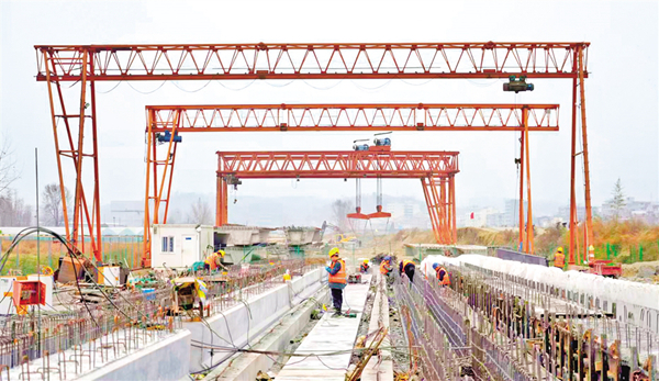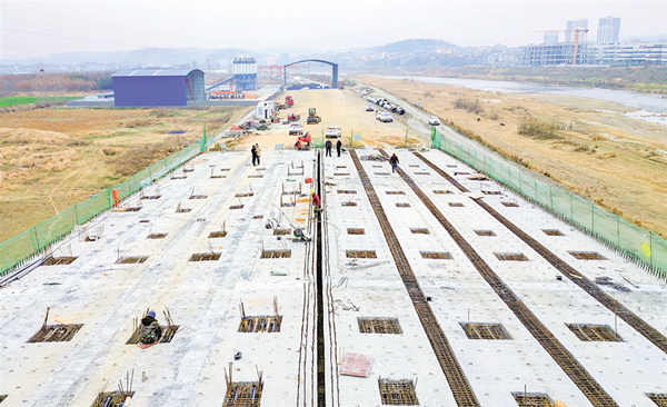 安康高新段項(xiàng)目生產(chǎn)經(jīng)理張占龍介紹,月河快速干道高新段全長3.6公里,目前施工總體進(jìn)度達(dá)65%。近期,重點(diǎn)推進(jìn)控制性工程宋家營大橋建設(shè)。宋家營月河大橋橫跨月河與十天高速,特別是橫跨十天高速部分,因下方有高速行駛的車輛,施工難度和安全隱患較大。項(xiàng)目部在保證安全質(zhì)量的前提下,增加人力物力,大干快上,力爭(zhēng)6月底全線半幅通車。