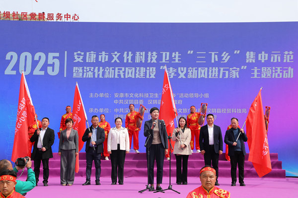本網(wǎng)訊(通訊員 賈學(xué)林)文化惠民添活力,孝義新風(fēng)潤安康。3月18日,2025年安康市文化科技衛(wèi)生“三下鄉(xiāng)”集中示范暨深化新民風(fēng)建設(shè)“孝義新風(fēng)進(jìn)萬家”主題活動在漢陰縣澗池鎮(zhèn)舉行。市委常委、宣傳部部長陳蓮宣布活動啟動并向“三下鄉(xiāng)”服務(wù)小分隊(duì)授旗。“三下鄉(xiāng)”市級成員單位、漢陰縣有關(guān)負(fù)責(zé)同志參加活動。