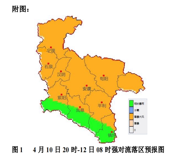本網(wǎng)訊 4月10日10時(shí),市氣象臺(tái)發(fā)布重要天氣報(bào)告:受低層切變和西南暖濕氣流影響,4月10日夜間至11日我市有一次強(qiáng)對(duì)流天氣過程,期間伴有雷電、短時(shí)強(qiáng)降水(10~15毫米/小時(shí),局地可達(dá)20毫米每小時(shí)以上)、冰雹、陣性大風(fēng)等對(duì)流性天氣。過程累計(jì)降水量:10~20毫米,個(gè)別鎮(zhèn)辦可達(dá)40毫米以上。11日至12日秦巴山區(qū)陣風(fēng)可達(dá)7級(jí)以上,全市日最高氣溫下降顯著。