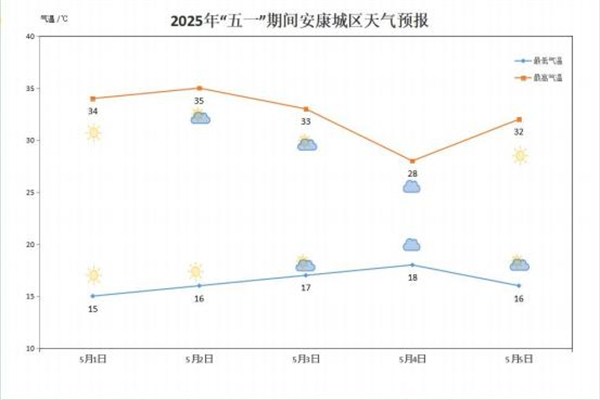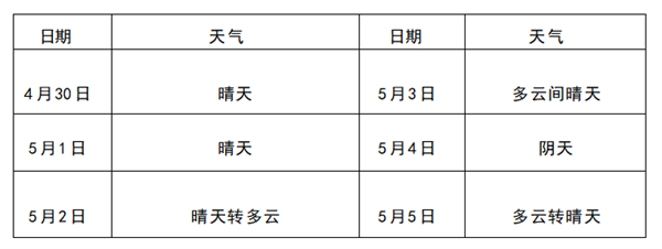 預(yù)計“五一”期間我市川道地區(qū)最低氣溫13~19℃,最高氣溫32~36℃,高山地區(qū)最低氣溫10~14℃,最高氣溫29~32℃。