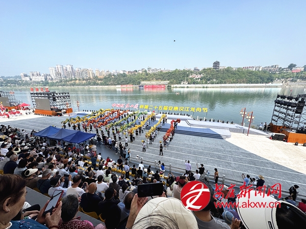 江面上,一艘艘龍舟如離弦之箭飛馳而過(guò),選手們整齊劃一地?fù)]動(dòng)船槳,濺起層層水花,展示出強(qiáng)大的團(tuán)隊(duì)協(xié)作精神和競(jìng)技實(shí)力。舞臺(tái)上,文藝表演精彩紛呈。緬懷先賢節(jié)目莊嚴(yán)肅穆,百名童子手持竹簡(jiǎn),齊聲詠?lái)灱牢模瑢⑷藗儙Щ氐侥莻(gè)古老的時(shí)代,追思愛(ài)國(guó)詩(shī)人屈原。龍頭祭祀環(huán)節(jié)莊重而神圣,“請(qǐng)龍、祭龍、合龍、送龍、龍頭點(diǎn)睛”等流程依次上演,傳承地域民俗風(fēng)情。情景歌舞、漢調(diào)二黃、民俗舞蹈等具有濃郁地方特色的節(jié)目輪番登場(chǎng),演員們?nèi)橥度耄镁康谋硌菡宫F(xiàn)了安康獨(dú)特的文化魅力,為觀眾帶來(lái)了一場(chǎng)視聽(tīng)盛宴。
