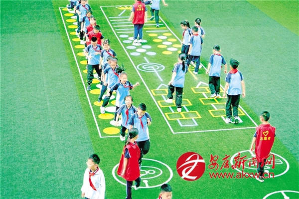 兒童節(jié)前夕,平利縣城關(guān)小學(xué)在校園地面鋪設(shè)創(chuàng)意彩繪,這份特殊的禮物讓孩子們玩得不亦樂乎。 杜鵑 攝