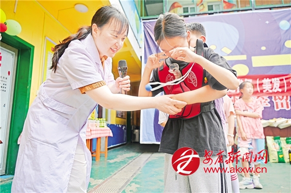 5月27日,兒童節(jié)前夕,安康職業(yè)技術(shù)學(xué)院護(hù)理學(xué)院師生走進(jìn)嵐皋縣佐龍鎮(zhèn)留守兒童關(guān)愛中心,開展心肺復(fù)蘇與海姆立克急救法培訓(xùn)。 張智明 攝