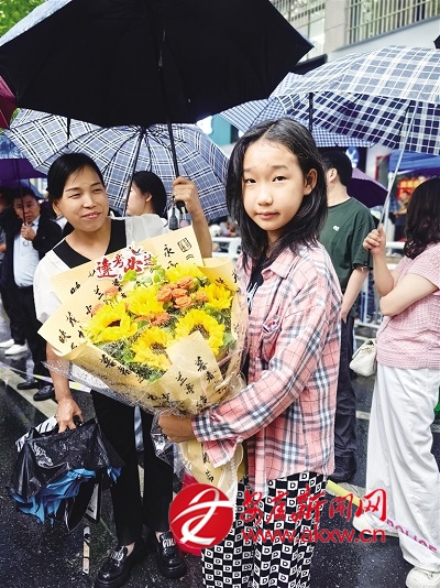 yJe安康新聞網(wǎng) 6月7日上午,安康中學(xué)考點外妹妹正手捧鮮花等待完成第一場考試的姐姐。 鄭時根 攝yJe安康新聞網(wǎng)
