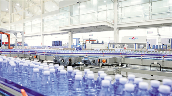走進(jìn)位于漢濱區(qū)關(guān)廟鎮(zhèn)龍王泉村的安康龍王泉富硒礦泉水有限公司基地,一輛輛貨車排起長龍,有序等待裝貨。全自動(dòng)生產(chǎn)線上,經(jīng)過吹瓶、灌裝、旋蓋、噴碼、貼標(biāo)等工序,一瓶瓶富硒礦泉水魚貫而出。“目前日發(fā)貨量超3萬件,省外訂單同比增長40%。”該公司辦公室主任李海安指著運(yùn)往深圳的貨柜說。
