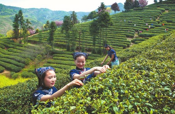 “三月三哪上茶山(喲咿兒喲),姐妹采茶呀心喜歡哪(喲咿兒喲),山山飄清香,處處好茶園……”春分前,紫陽富硒茶觀光園滿山翠綠已然蘇醒。茶園里,唐丹丹唱的紫……