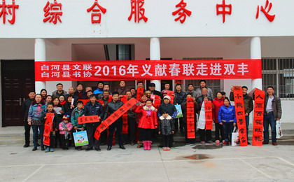 春節(jié)未到,年味先濃。1月16日中午,由漢濱區(qū)文廣旅游局主辦、漢濱區(qū)文化館、區(qū)書協(xié)、美協(xié)、江北辦事處承辦的“2016年萬(wàn)幅春聯(lián)進(jìn)農(nóng)家”活動(dòng)啟動(dòng)儀式在江北辦事處……