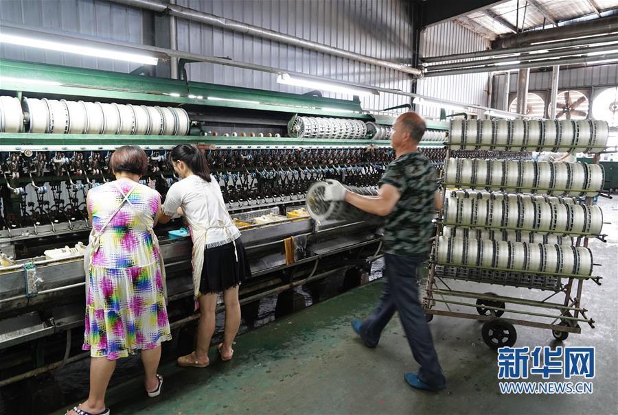 7月19日,工人在石泉縣陜西天成絲業(yè)有限公司生產(chǎn)車(chē)間內(nèi)繅絲。 新華社記者 邵瑞 攝