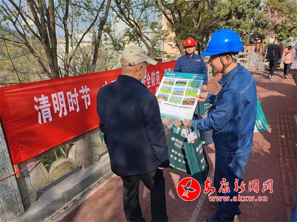 本網(wǎng)訊(通訊員 方興宣)4月1日,在香溪洞景區(qū)內(nèi),國網(wǎng)安康供電公司工作人員提前出動,利用休息日向前來祭祀的群眾發(fā)放電力設(shè)施保護(hù)宣傳單,宣講預(yù)防山火注意事項(xiàng)。