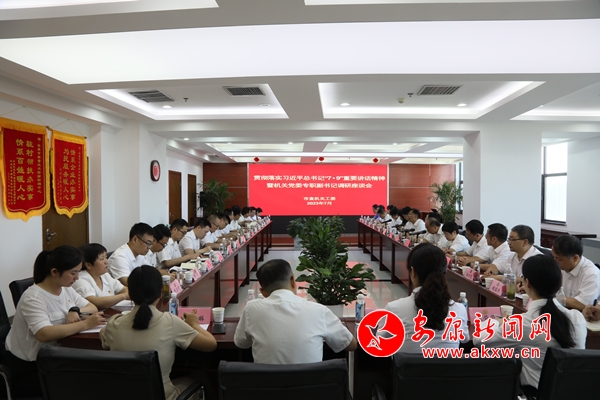 會(huì)前,與會(huì)人員到市公安局“雙品培驗(yàn)”中心、安康市(安康高新區(qū))黨群服務(wù)中心進(jìn)行了觀摩。座談會(huì)上,重溫了習(xí)近平總書記在中央和國家機(jī)關(guān)黨的建設(shè)工作會(huì)議上的重要講話,傳達(dá)學(xué)習(xí)了全國組織工作會(huì)議精神及《機(jī)關(guān)黨委專職副書記選拔任用管理辦法(試行)》。市直各機(jī)關(guān)黨委專職副書記進(jìn)行交流發(fā)言。