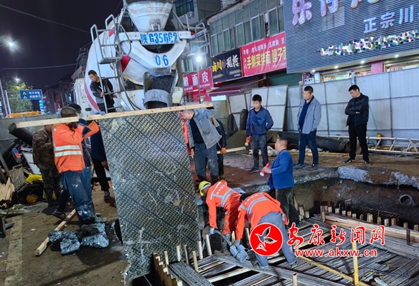“必須爭分奪秒搶修!”安康市市政園林處黨委副書記、副處長廖邦友當日下午現(xiàn)場指揮調度,協(xié)調人員、機械、物資力量開展路面沉陷搶修工作。在道路現(xiàn)場,已協(xié)調并會同交警對該路段采取封閉措施,設置圍擋和警示牌,提醒車輛和行人繞行。安康市市政園林處道橋管護科組織20余名搶險工人連夜搶修。