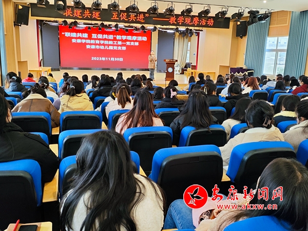 在開展教學觀摩研討交流活動中,安康市幼兒園6名教師為安康學院學前教育系350余名學生,進行了五大領域集體教學觀摩課展示。兩個黨支部20余名黨員教師,一起探討黨建品牌建設方面的工作思路,了解市幼兒園在學前教育理論指導方面的需求,并建立了黨支部共建教研交流群。