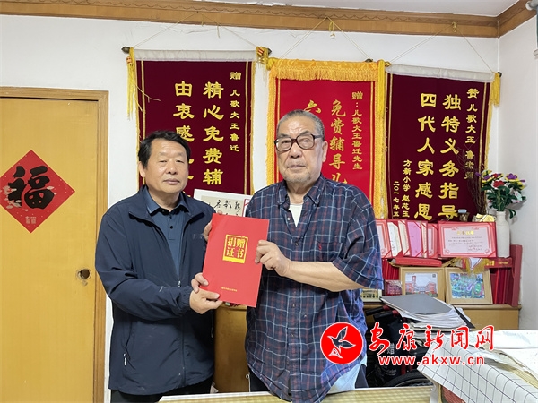 本網(wǎng)訊(通訊員 阿龍 培華)全國聞名的西安兒歌大王魯遷先生,積極響應(yīng)安康市圖書館、安康市書香少兒讀書會“我為留守兒童捐圖書”的倡議,于6日4日捐贈個人著作及私人藏書157冊。安康市書香少兒讀書會負責人登門致謝,并頒發(fā)《捐贈證書》。