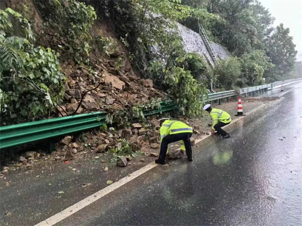 針對(duì)強(qiáng)降雨天氣給道路交通安全帶來(lái)的不利影響,聯(lián)合路政部門對(duì)高速公路易積水、易落石、易滑坡等路段持續(xù)開(kāi)展交通安全隱患排查,并函告運(yùn)營(yíng)部門治理,及時(shí)消除各類安全風(fēng)險(xiǎn)隱患。同時(shí),多點(diǎn)駐警,加強(qiáng)安全提示,第一時(shí)間通過(guò)官方新媒體平臺(tái)以及轄區(qū)路面LED情報(bào)板,及時(shí)發(fā)布路況及天氣信息,使廣大的交通參與者及時(shí)了解轄區(qū)路況,為出行駕駛?cè)颂峁┯行⒖,確保廣大群眾出行安全。