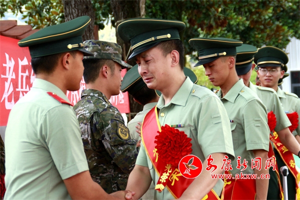一雙雙緊握的手、一個(gè)個(gè)深情的擁抱,伴隨著悠揚(yáng)的音樂,在送行的人群中我們看到了戰(zhàn)友們緊緊相擁,你一言、我一語,無一不訴說著戰(zhàn)友之間無限的眷戀?粗磳⒎謩e的戰(zhàn)友,官兵們?cè)僖部刂撇蛔?nèi)心的情感,眼中的淚水如斷線的珠子不斷滑落。這不僅是對(duì)軍營(yíng)生活的留念,更是對(duì)軍旅青春的不舍。