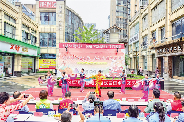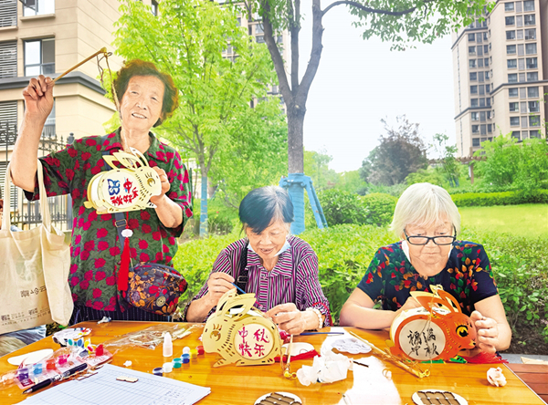 9月12日,漢濱區(qū)江北街道后張嶺社區(qū)在山水嶺居小區(qū)舉辦“中秋佳節(jié)情意濃,文明風(fēng)尚萬家揚(yáng)”活動(dòng);顒(dòng)由居民自己創(chuàng)意進(jìn)行文采、繪畫展示。(胡建波 攝)