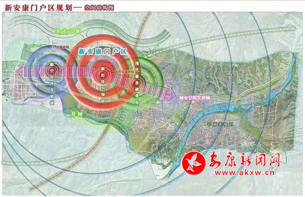 依據(jù)總體規(guī)劃,擬將安康高新區(qū)高新大道以西、北環(huán)快速干道以南、月河流域以北、寨河梁以東區(qū)域的60平方公里,規(guī)劃為新安康門(mén)戶(hù)區(qū)。在空間布局上,以高鐵安康西站為核心,以新時(shí)代大道、新安康大道、安康大道、創(chuàng)新路4條東西向城市主干道和高新大道、高新七路、高新十路、高新十二路、冉河西路、國(guó)賓大道6條南北向城市主干道為軸線,規(guī)劃布局新經(jīng)濟(jì)引領(lǐng)區(qū)、臨空經(jīng)濟(jì)區(qū)、新行政中心區(qū)、現(xiàn)代服務(wù)聚集區(qū)、安康特色產(chǎn)業(yè)區(qū),以此打造“五大”門(mén)戶(hù)。