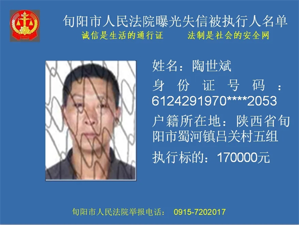 曝光失信 | 旬陽(yáng)法院發(fā)布2024年第一期失信被執(zhí)行人名單