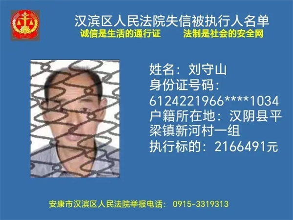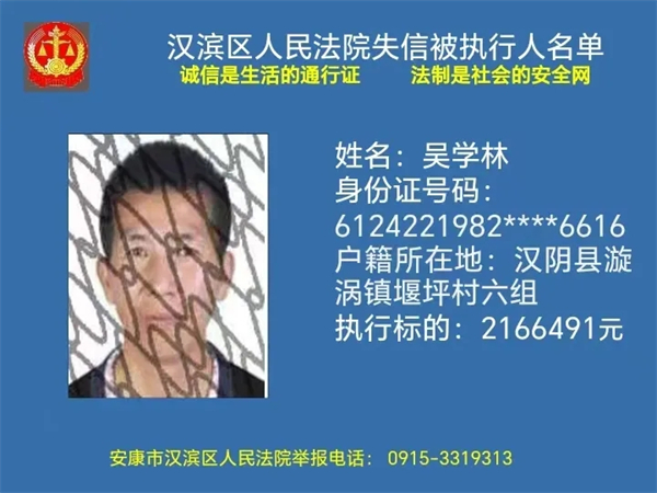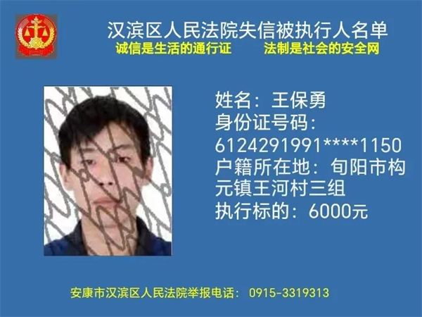曝光失信 | 漢濱區(qū)人民法院失信被執(zhí)行人曝光名單(2024年第1期)