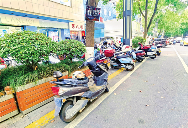 6月18日,在安康城區(qū)金州南路人行道上,部分車輛占用盲道、車身超出停車線(圖1),未按要求停放車輛(圖2),造成了安全隱患。(記者 張喬 攝)HXg安康新聞網(wǎng)