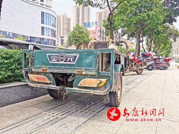 6月22日,安康城區(qū)江北江華公司消防通道被摩托車占用(圖1),這一區(qū)域的人行道盲道也被各種車輛侵占(圖2),存在安全隱患。(記者 潘潤(rùn)生 攝)DEN安康新聞網(wǎng)