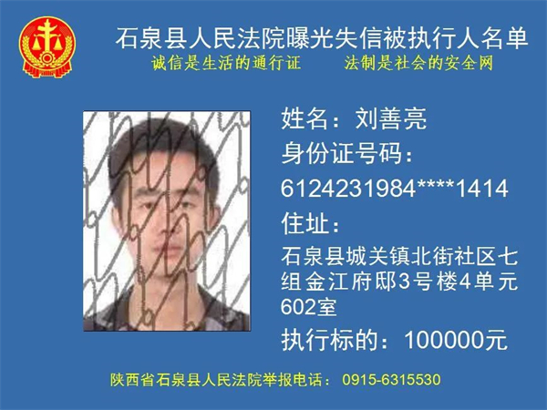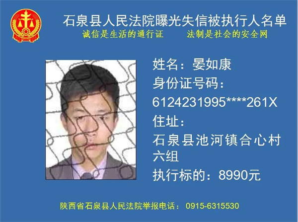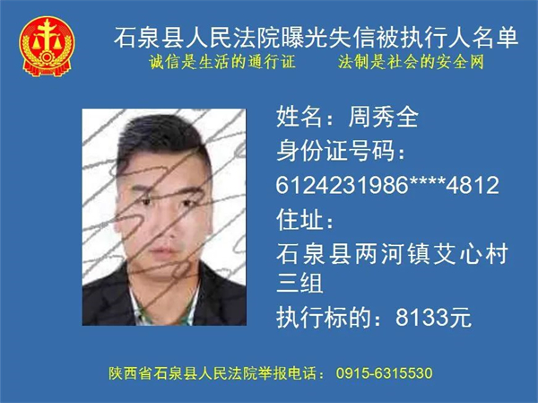 曝光失信 | 石泉縣人民法院曝光失信被執(zhí)行人名單。2022年第五期)