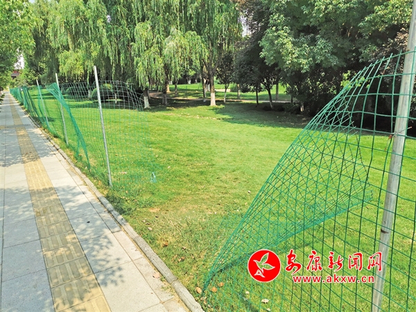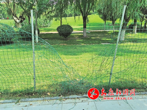 清明節(jié)期間,安康高新區(qū)運動公園內5處圍網被游人破壞。(王琳 攝)