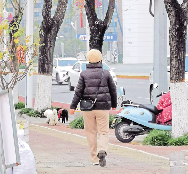 1月4日,在安康育才西路有市民遛狗不牽繩。記者 潘潤生 攝……