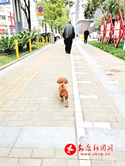 12月21日,在安康大劇院附近,有市民遛狗不牽繩。記者 潘潤生 攝……