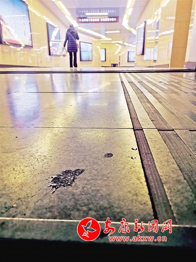 1月16日,有市民在安康城區(qū)江北大道地下通道內隨地吐痰。記者 潘潤生 攝……