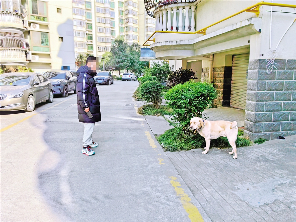 1月26日,我市中心城區(qū)某小區(qū)內有市民遛狗不牽狗繩。鄭時根 攝……